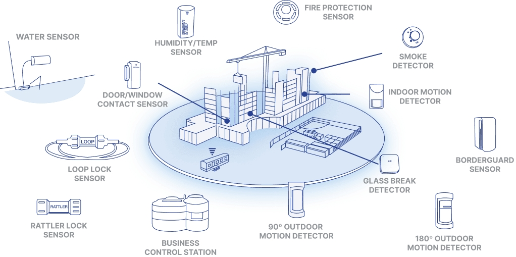 Your comprehensive security fortress is designed to safeguard your entire site instantly from threats like theft, fire, and water damage. With ambush-proof technology, a vast 2,000-foot wireless range, and the capability to monitor up to 450 sensors & 50 signal boosters, this all-in-one portable security system is unparalleled in its protection, covering a staggering 12 million square feet.